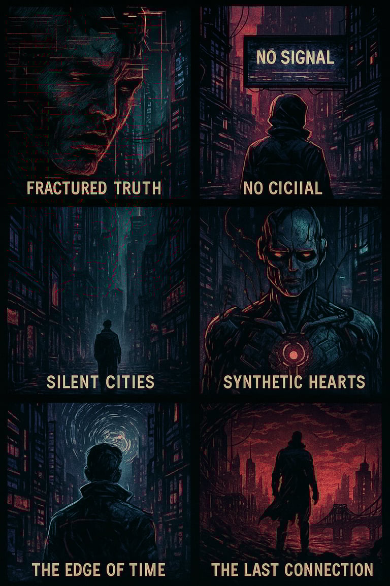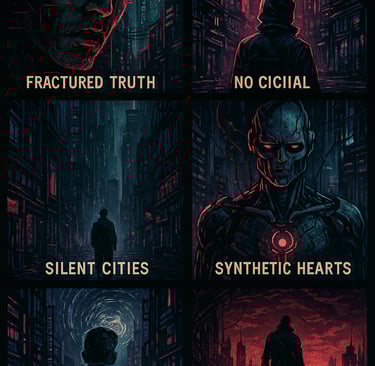 “Fractured Reality” is a six-chapter descent into a city of flickering neon and hidden rot, told in the order of its tracks: