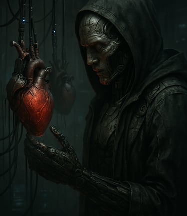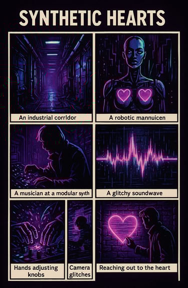 From the hush emerges a pulse—mechanical, relentless, searching. Layered arpeggios and pounding rhythms mimic a reborn heartbeat, a fusion of flesh and circuit. Hope flickers in the cold machinery of the city’s core.
