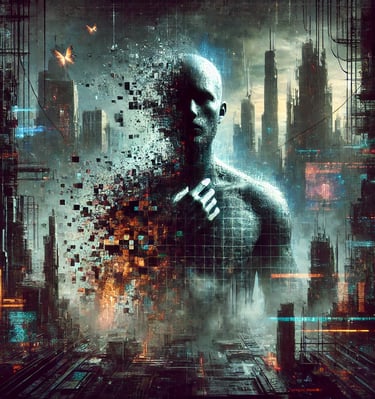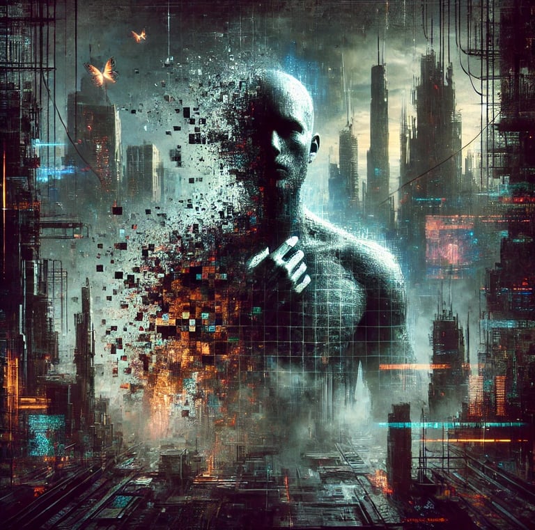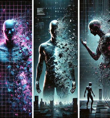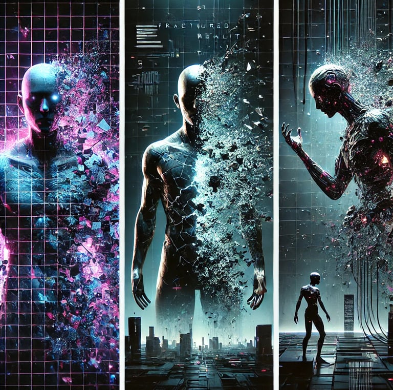 Explore immersive audiovisual art reflecting glitch-futuristic dimensions.